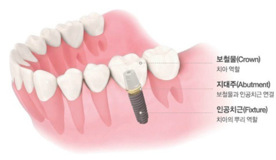 임플란트는 크게 3가지 부분으로 구성됩니다. 이 구성 요소는 다음과 같습니다.
