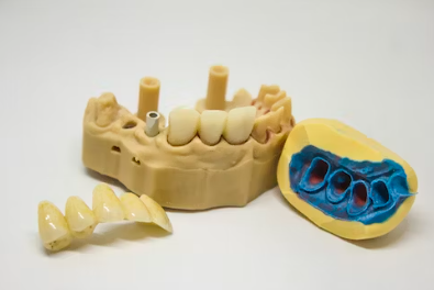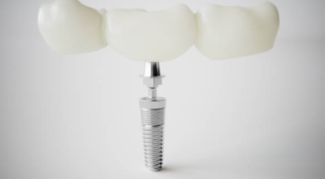 임플란트는 이물질로 만든 나사 모양의 기둥을 티타늄 등의 재질로 만든 아래턱 뼈나 상턱 뼈 안쪽에 밀어 넣어 인공 치아를 고정시킵니다. 이 방법으로 문제가 있는 치아를 발치 후 분리형 인공 치아를 대체할 수도 있습니다.