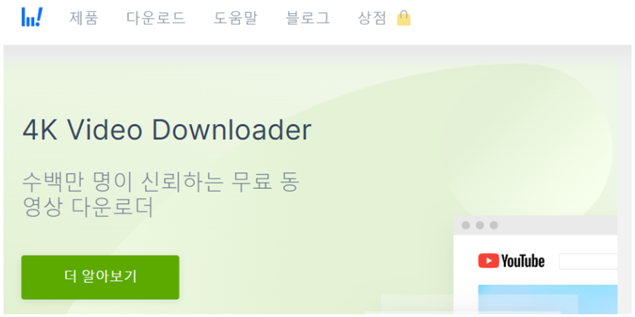 두번째 소개 드리는 방법은 사이트가 아니라 무료 프로그램을 이용한 다운로드 방법입니다. 4K Video Downloader는 가볍게 설치를 하기만 하면 유튜브의 영상을 가장 쉽게 받을 수 있는 프로그램입니다.