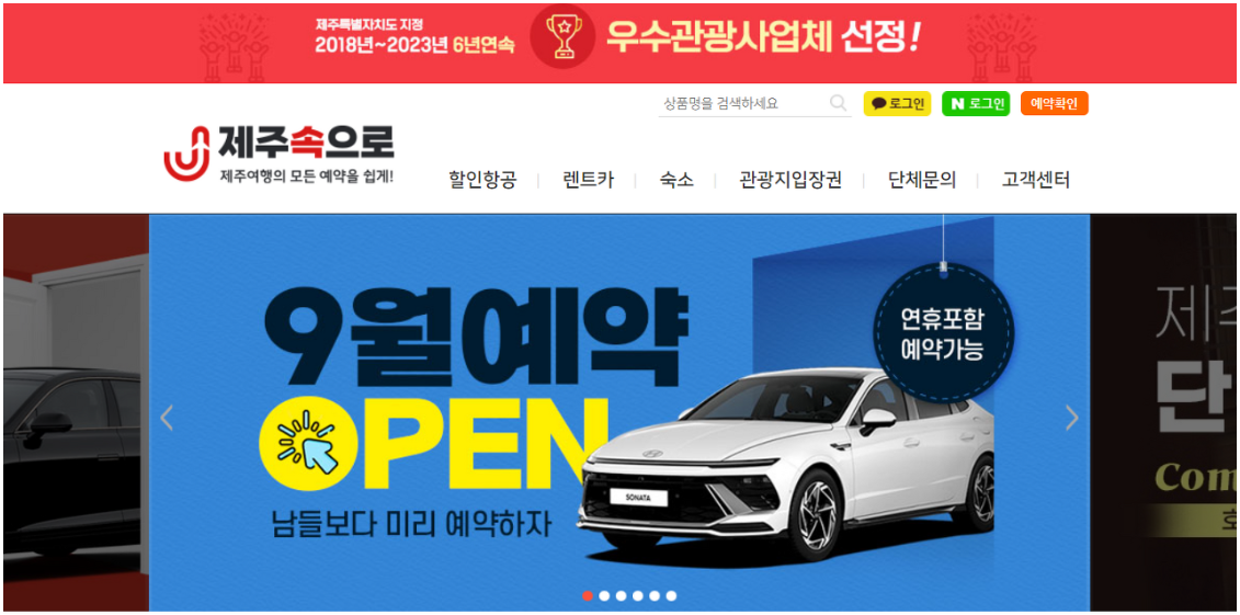 제주속으로는 다양한 업체에서 제공하는 동일 차종의 렌트카 가격비교와 보장을 비교하면서 본인에 맞는 차량을 예약할 수 있도록 시스템을 운영하고 있습니다. 예약을 완료하면 자동으로 업체가 배정되어서 바로 이용 가능합니다. 또한, 제주도 렌트카 뿐 아니라 항공권과 숙소, 관광지 입장권 등도 저렴한 가격으로 구매할 수 있으니, 한 번 구경하시면 좋을 것 같습니다. 특히 5~6월은 연휴가 많아서 다양한 프로모션들이 준비되어 있으니 꼭 확인해 보시기 바랍니다.