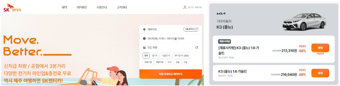 또한, 차량 반납 시 연료칸이 처음보다 초과하여 채워진 경우 초과된 유류비는 환불 처리해준다고 합니다. SK렌트카 예약방법은 홈페이지나 어플을 통해서 간편하게 이용할 수 있습니다.