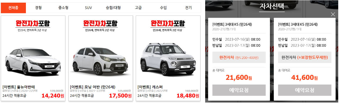 여행을 계획하시는 분들은 제주속으로 홈페이지에서 환불규정을 자세하게 확인해 보시기 바랍니다. 그리고 예약이 어려운 분들을 위해 PC 버전으로 제주도 렌트카 예약하는 방법도 제공하고 있습니다. 제주속으로는 예약 시 완전자차 보장한도가 2가지로 나눠져 있으니, 비용과 보장내역을 꼼꼼하게 확인해 주시기 바랍니다.