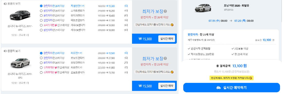 제주도 렌트카 추천 업체별 쏘나타 1일 비용 비교해보기