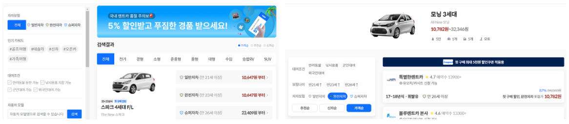 렌트카를 예약하는 방법은 매우 간단합니다. 어플이나 홈페이지에서 지역, 날짜, 시간을 선택한 후 원하는 차량을 검색하면, 한눈에 다양한 차량의 가격을 비교할 수 있습니다.